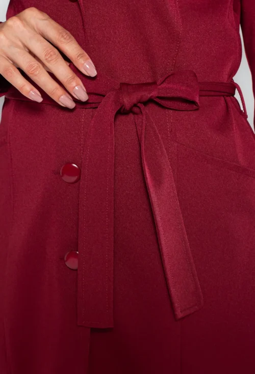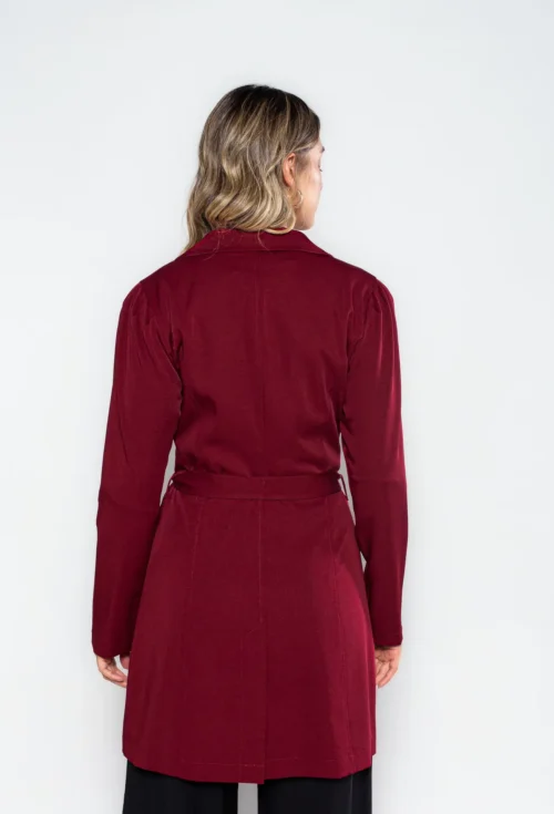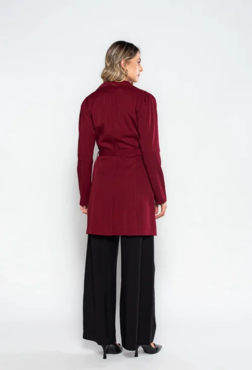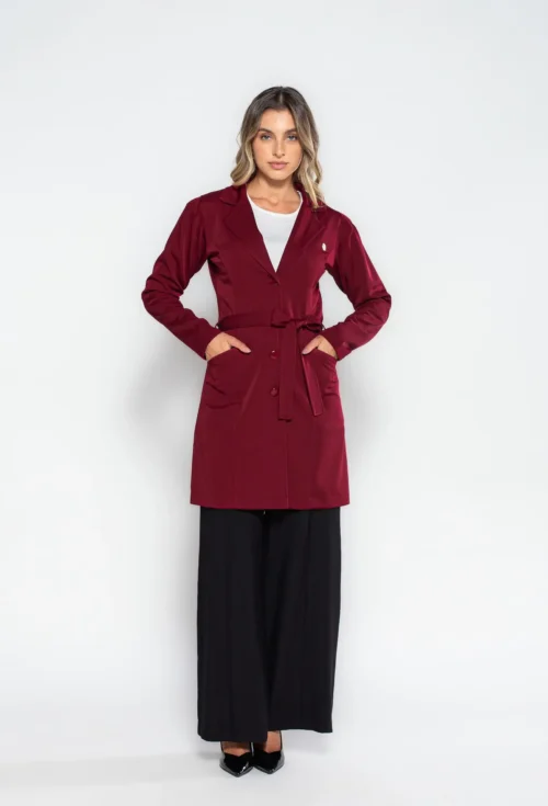 O cinto de amarrar adiciona um toque de ajuste personalizado, permitindo que o jaleco se adapte ao seu corpo de maneira confortável e estilosa. A combinação de design elegante, tecido de alta qualidade e caimento perfeito torna este jaleco uma opção ideal para quem busca um visual impecável no ambiente de trabalho.