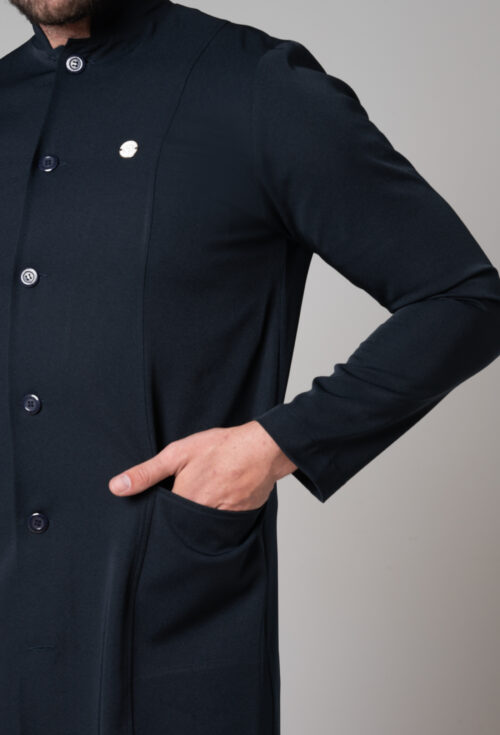 Jaleco confeccionado em tecido 95% poliester e 5% elastano. Um jaleco moderno, fácil de lavar e cuidar, que foi feito para durar por bastante tempo. Possui bolsos embutidos, fechamento em botões, e manga com punho. Esse jaleco é perfeito para quem busca estilo e conforto ao mesmo tempo.