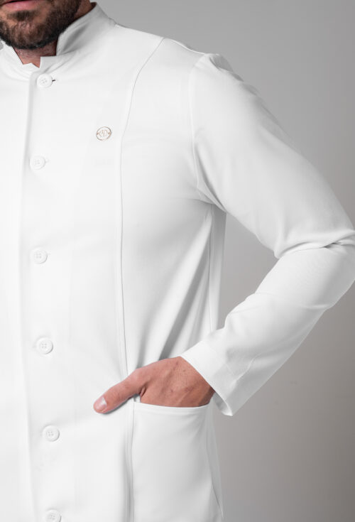 Jaleco confeccionado em tecido 95% poliester e 5% elastano. Um jaleco moderno, fácil de lavar e cuidar, que foi feito para durar por bastante tempo. Possui bolsos embutidos, fechamento em botões, e manga com punho. Esse jaleco é perfeito para quem busca estilo e conforto ao mesmo tempo.
