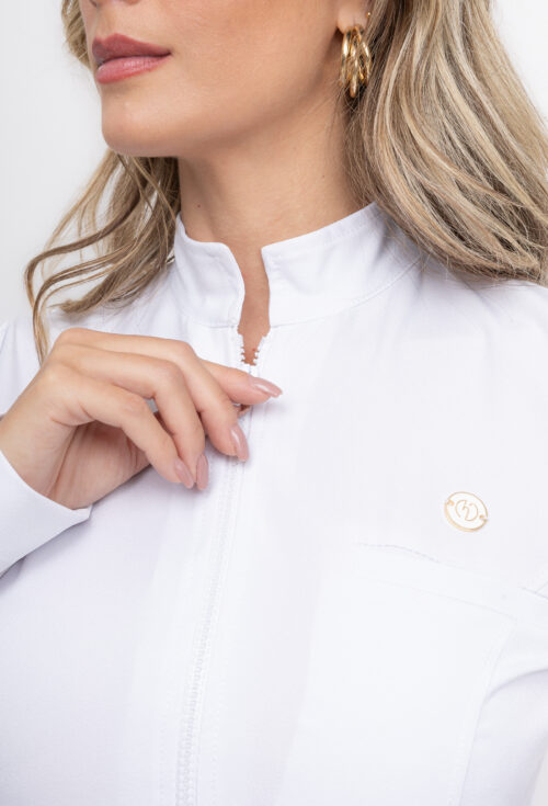 O jaleco elastic zíper sofisticado é perfeito para o seu dia a dia, garantindo estilo e conforto.