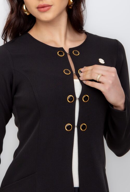 O diferencial desse modelo fica nos oitos botões, com fecho em gancho proporcionando conforto e praticidade. E os detalhes em dourado dão toque de elegância.