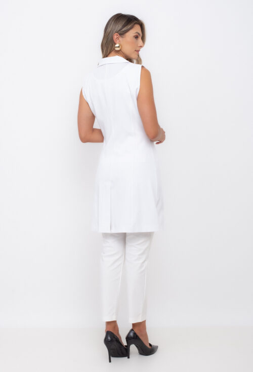 O design foi cuidadosamente desenvolvido para unir elegância e praticidade, com gola tradicional que transmite profissionalismo, fechamento frontal por botões que facilita o vestir e confere um acabamento clássico, além de bolsos amplos e funcionais, ideais para carregar itens essenciais no dia a dia, como canetas, celular ou instrumentos de trabalho. O corte moderno valoriza a silhueta sem restringir os movimentos, resultando em um visual alinhado, confortável e versátil.