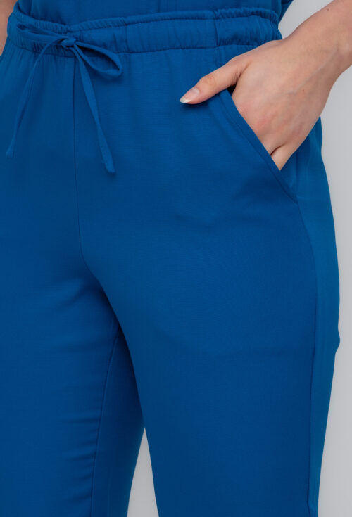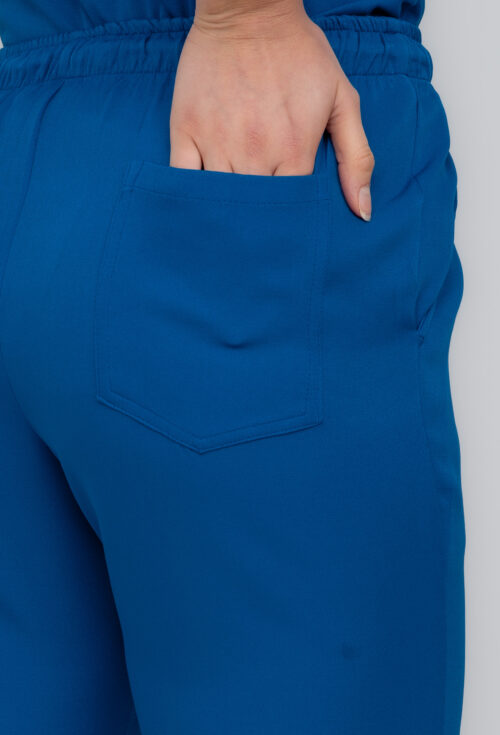 Já a calça possui corte reto, elástico na cintura com cordão para regulagem e também tem bolsos nas laterais para manuseio no dia a dia.