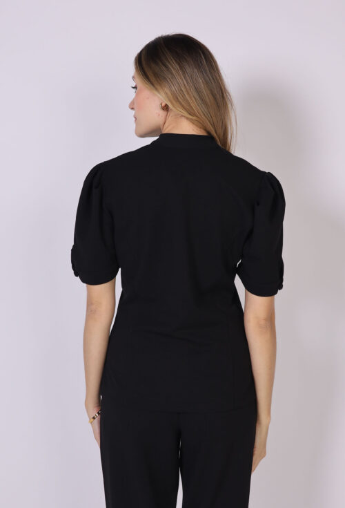 Na roupa contém as mangas princesa com um detalhe de botão, dando um toque de elegância no seu visual.