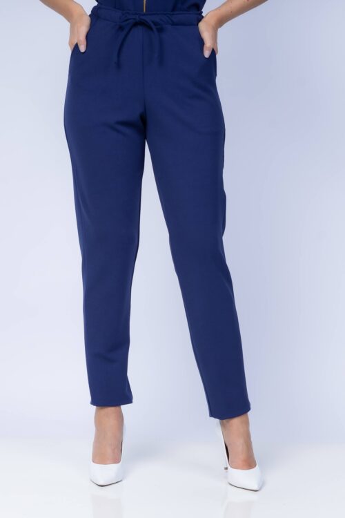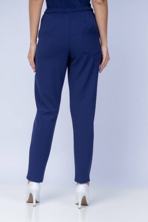 A calça possui o corte reto com bolsos laterais, elástico na cintura com cordão, assim podendo regular.