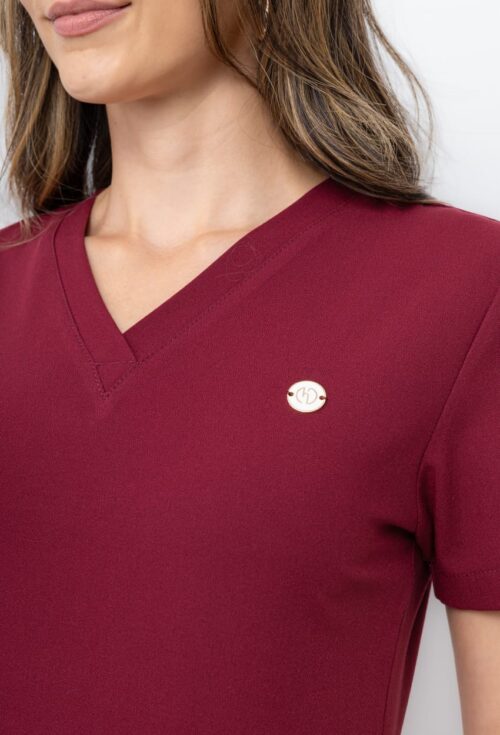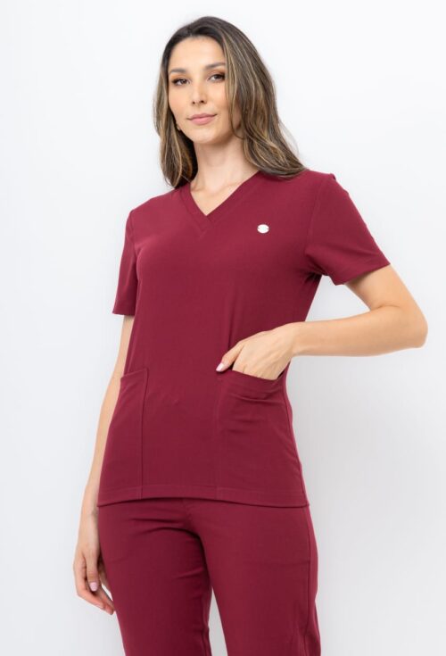 O scrub element clássico possui em sua composição 62% poliester e 33% viscose e 5% elastano. O toque da viscose proporciona leveza e todo o conforto.