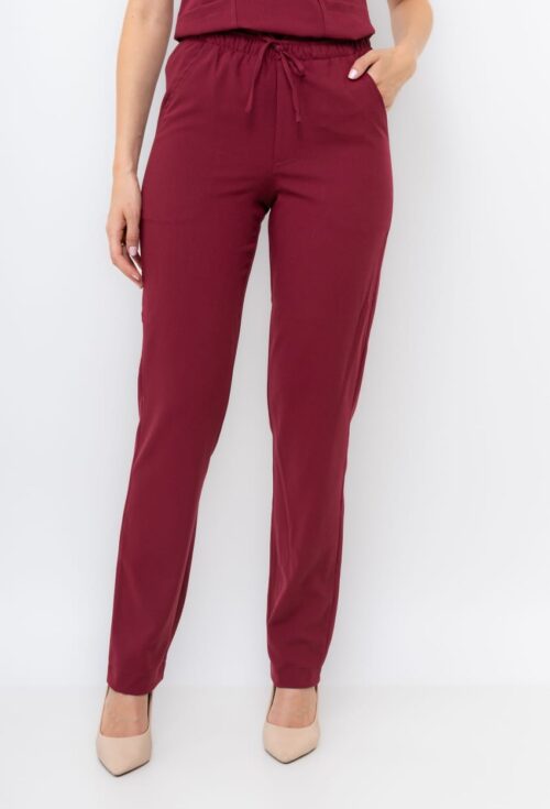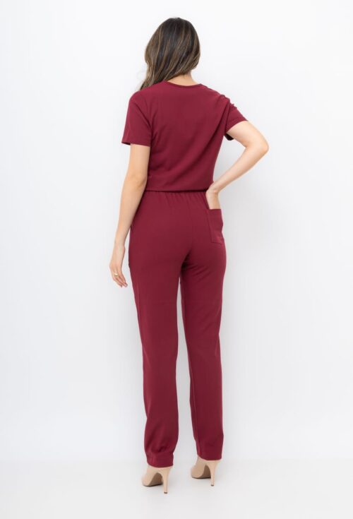 Já a calça possui barra reta, com bolsos faca e elástico na cintura com cordão para regulagem.