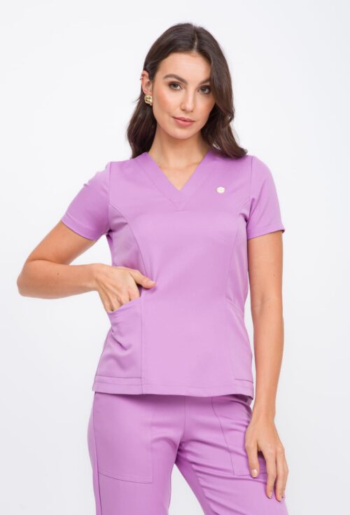 Scrub feminino barbie foi produzido com a composição de 95% poliester e 5% elastano, sendo perfeito para aqueles que amam leveza e conforto.