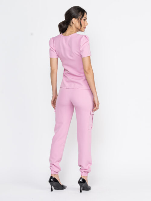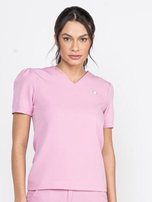 Scrub feminino barbie luxo, confeccionado no tecido barbie alfaiataria com composição de 95% poliéster e 5% elastano.