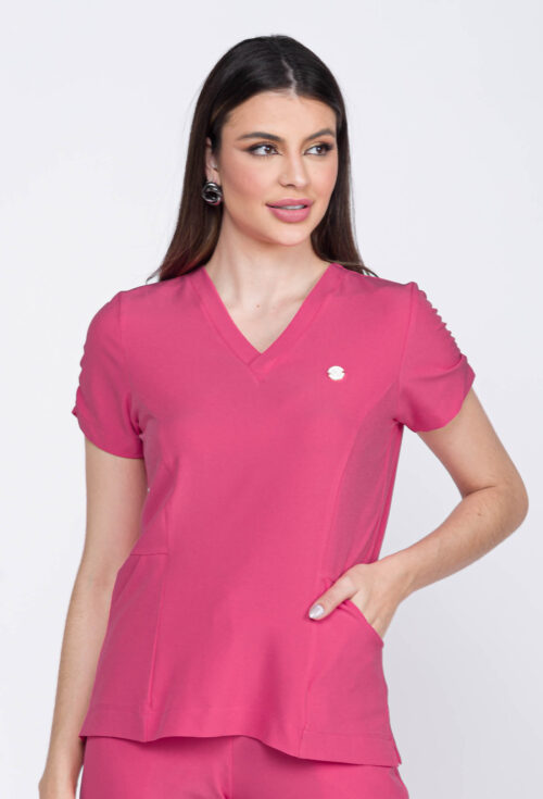 Scrub Feminino Crep Yves , confeccionado no Tecido Alfaiataria, com 95% Poliéster e 5% Elastano, trazendo todo o conforto , por ser bem leve e bem fresquinho .