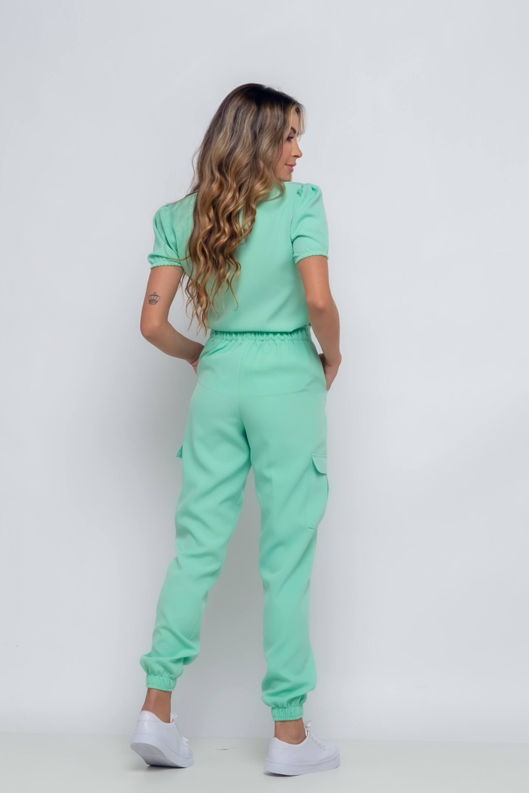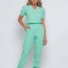 Scrub feminino feito no tecido alfaiataria, com 95% poliester e 5% elastano. Um modelo bem estiloso e moderno, confortável e com um caimento acinturado no corpo. É um scrub de fácil lavagem, longa durabilidade e não amassa com facilidade.