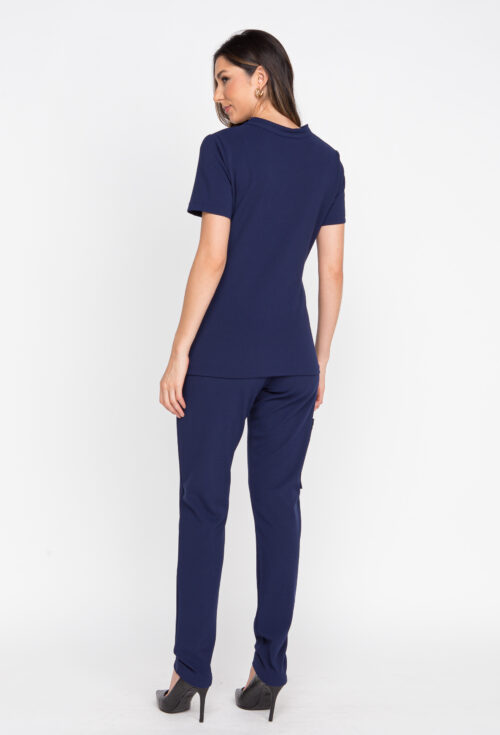 O novo modelo scrub malha crepe span casual possui na sua composição 95% poliéster e 5% elastano. Confeccionado com um tecido de muito elastano, o que proporciona conforto. Possui também fibras resistentes, deixando bem encorpado e não permitindo amassos.