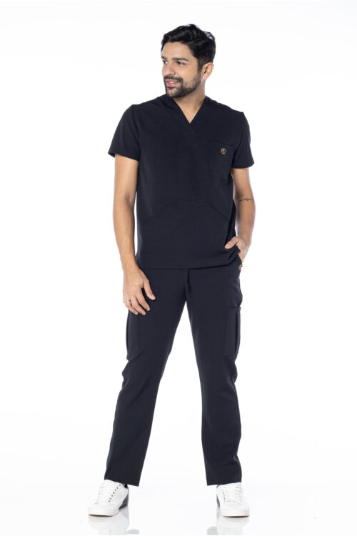 Scrub confeccionado no tecido alfaiataria turin, um tecido com um toque bem macio e bastante elastano.