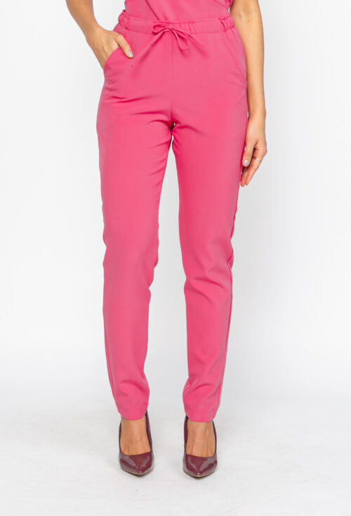 Já a calça possui elástico na cintura com cordão para controlar conforme a sua cintura. A calça possui bolso faca e barra reta.